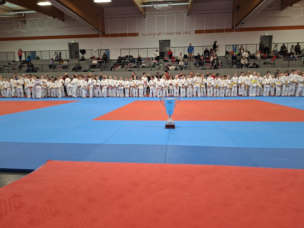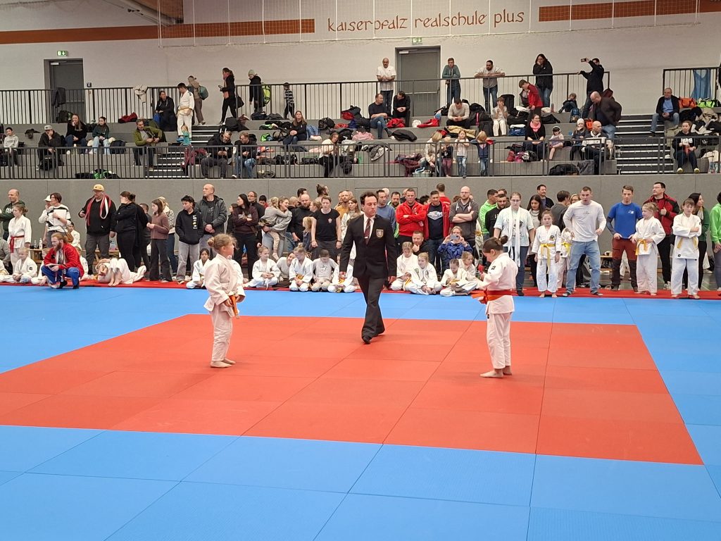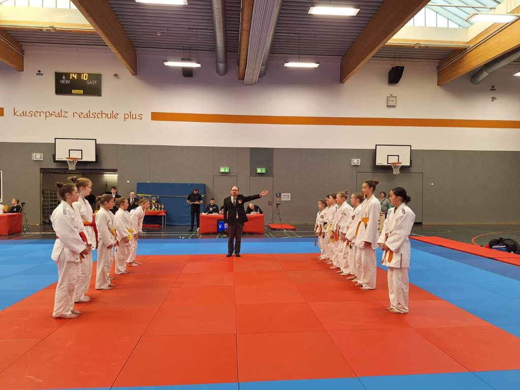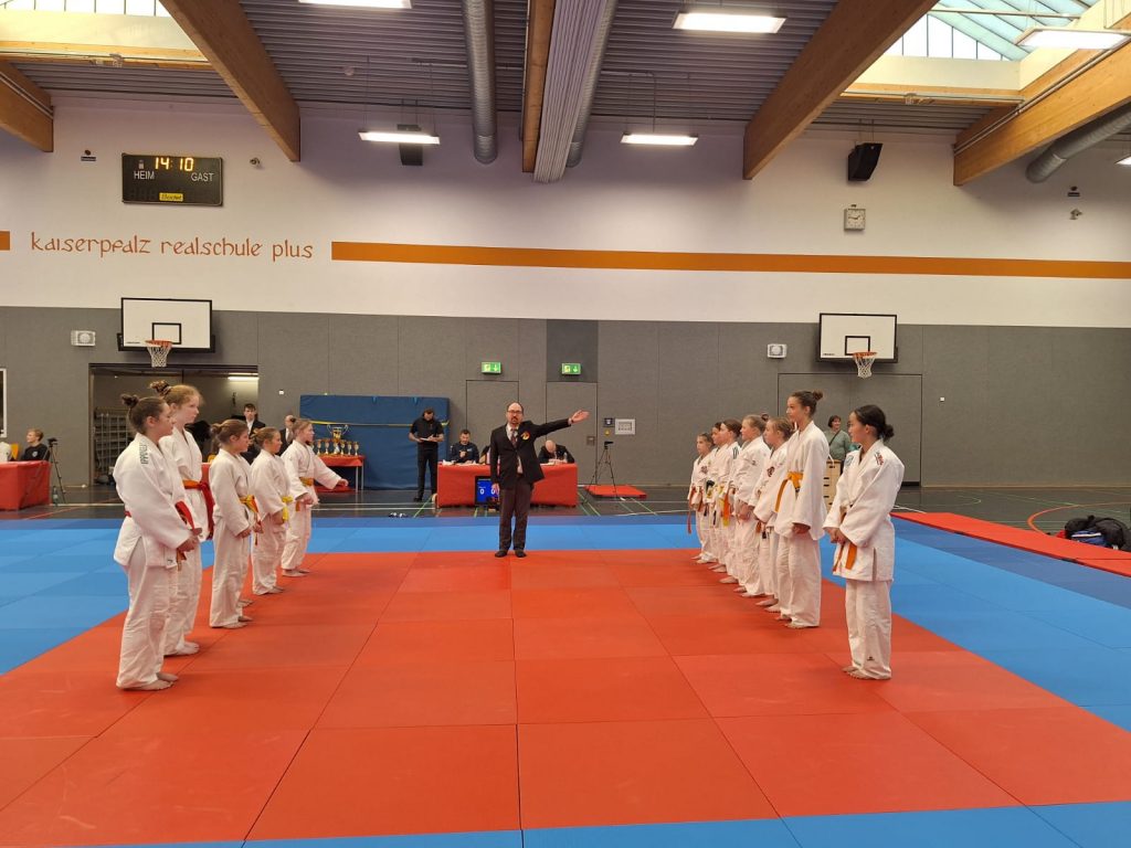 In eigener Halle fand am 22.11.2025 der Jahreshöhepunkt der Altersklassen U11 und U13 statt: der „Rheinland-Pfalz-Pokal der Bezirke“. Angetreten waren die Bezirke Trier, Koblenz, Westerwald-Taunus, Pfalz und Rheinhessen-Nahe mit jeweils Mädchen- und Jungs-Mannschaften. Die Rheinhessen-Nahe-Auswahl konnte sich dabei zwei 1. Plätze (wU11, mU13) und zwei 2. Plätze (mU11, wU13) sichern. In der Gesamtwertung fehlte allerdings ein gewonnener Mannschaftskampf, um den Titel nach 2024 wieder in den Bezirk zu holen. Mit dem 2. Platz hinter der Pfalz unterstrichen alle Kämpferinnen und Kämpfer, dass sie im Bundesland auf hohem Niveau mithalten können. Viele Einzelsiege in den Kämpfen gingen auf das Konto unserer Kämpferinnen und Kämpfer. Beispielsweise blieb Annika in allen 4 Begegnungen ungeschlagen. Neben schönen Würfen und erfolgreichen Übergängen von Stand in den Boden zeigten die Ingelheimer auch ihr Durchhaltvermögen und holten sogar Rückstände in den Einzelkämpfen wieder auf und drehten die Kämpfe zu ihrem Vorteil. Das sollte Ansporn sein, um sich im Training, gemeinsam mit den anderen Vereinen aus dem Bezirk, weiter zu verbessern. Von den Rotweinstädtern unterstützten: