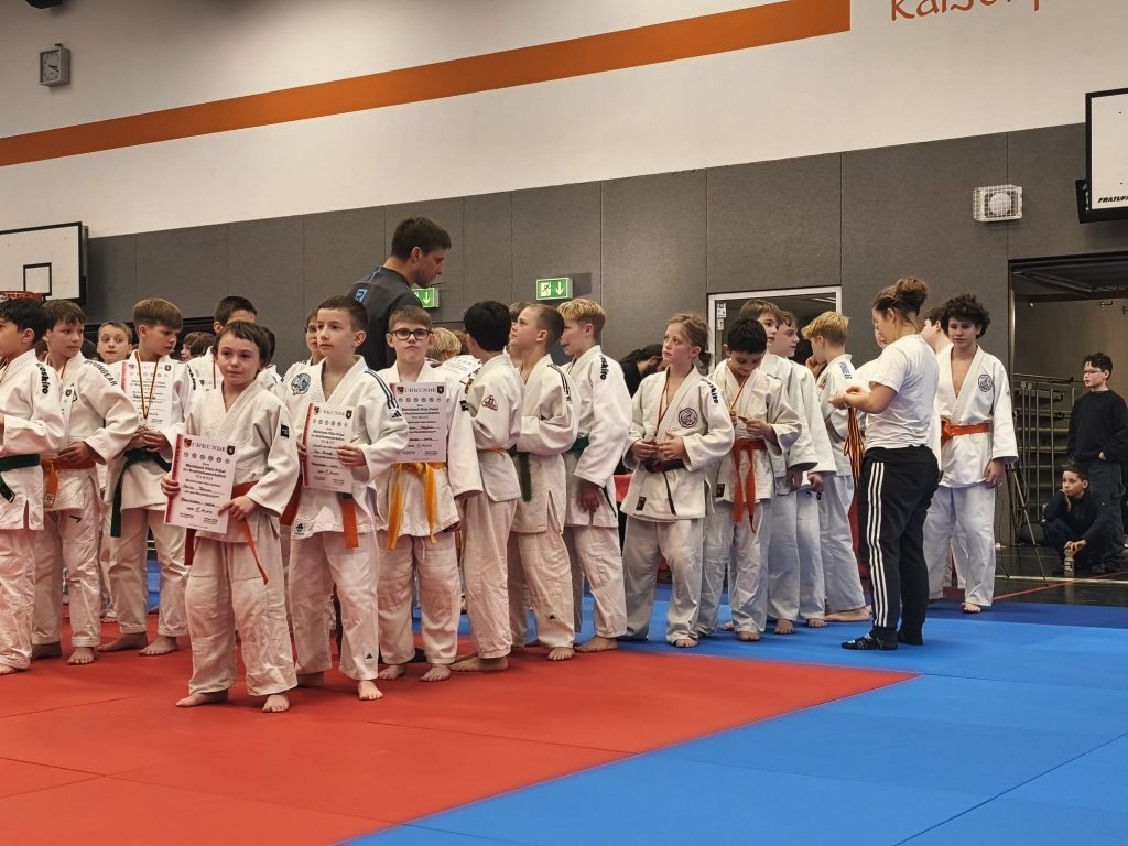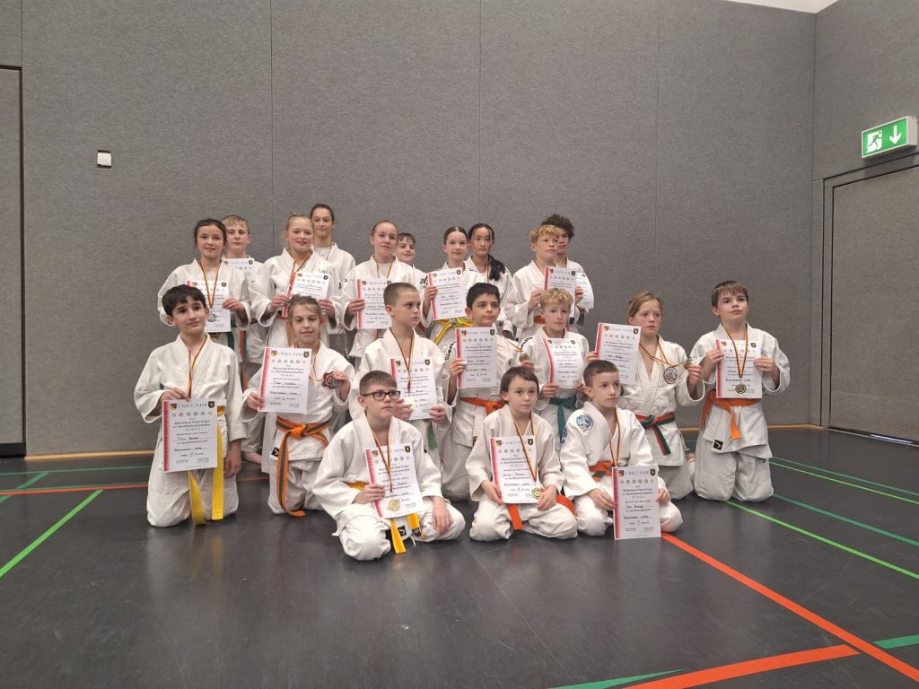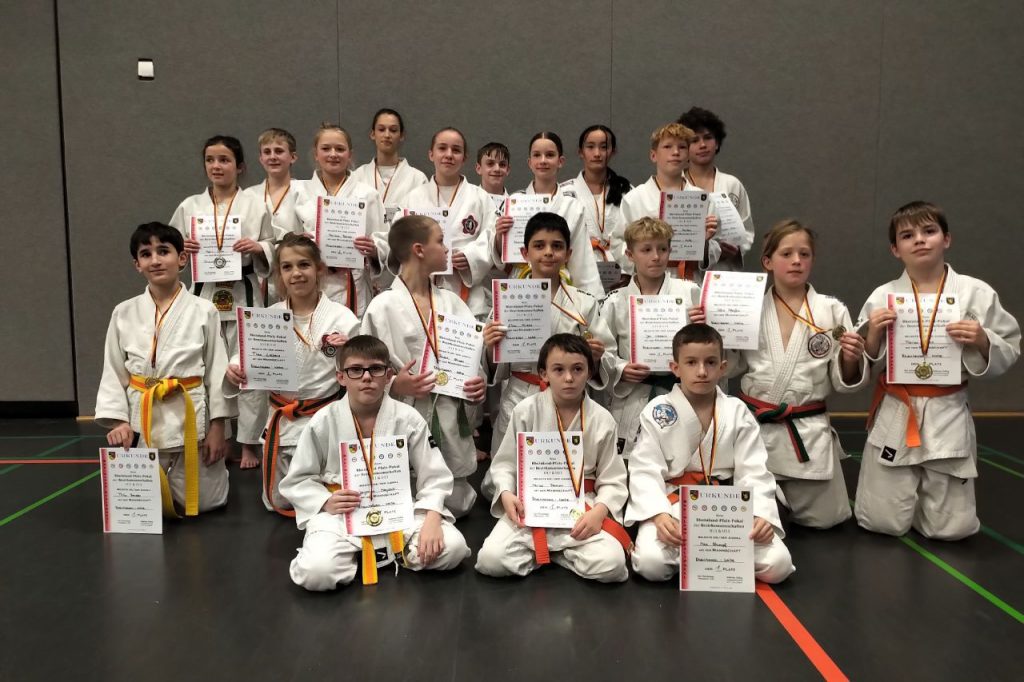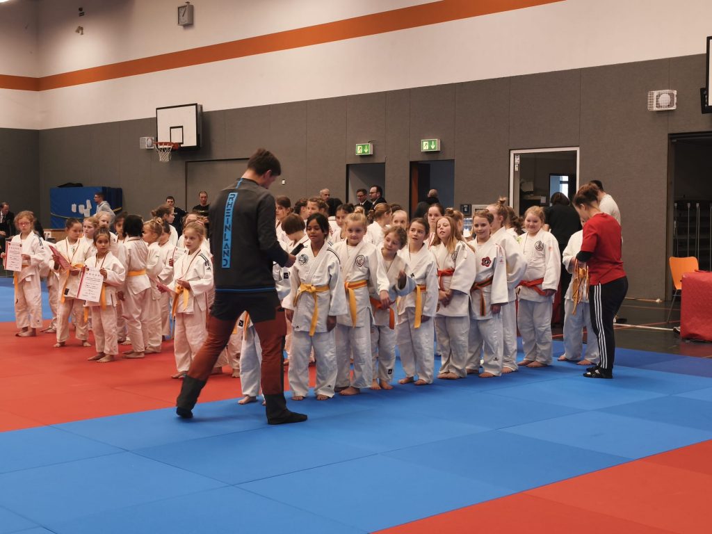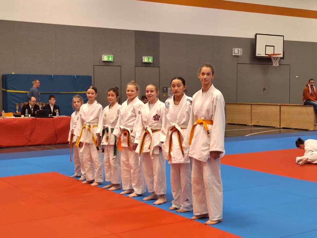 In eigener Halle fand am 22.11.2025 der Jahreshöhepunkt der Altersklassen U11 und U13 statt: der „Rheinland-Pfalz-Pokal der Bezirke“. Angetreten waren die Bezirke Trier, Koblenz, Westerwald-Taunus, Pfalz und Rheinhessen-Nahe mit jeweils Mädchen- und Jungs-Mannschaften. Die Rheinhessen-Nahe-Auswahl konnte sich dabei zwei 1. Plätze (wU11, mU13) und zwei 2. Plätze (mU11, wU13) sichern. In der Gesamtwertung fehlte allerdings ein gewonnener Mannschaftskampf, um den Titel nach 2024 wieder in den Bezirk zu holen. Mit dem 2. Platz hinter der Pfalz unterstrichen alle Kämpferinnen und Kämpfer, dass sie im Bundesland auf hohem Niveau mithalten können. Viele Einzelsiege in den Kämpfen gingen auf das Konto unserer Kämpferinnen und Kämpfer. Beispielsweise blieb Annika in allen 4 Begegnungen ungeschlagen. Neben schönen Würfen und erfolgreichen Übergängen von Stand in den Boden zeigten die Ingelheimer auch ihr Durchhaltvermögen und holten sogar Rückstände in den Einzelkämpfen wieder auf und drehten die Kämpfe zu ihrem Vorteil. Das sollte Ansporn sein, um sich im Training, gemeinsam mit den anderen Vereinen aus dem Bezirk, weiter zu verbessern. Von den Rotweinstädtern unterstützten: