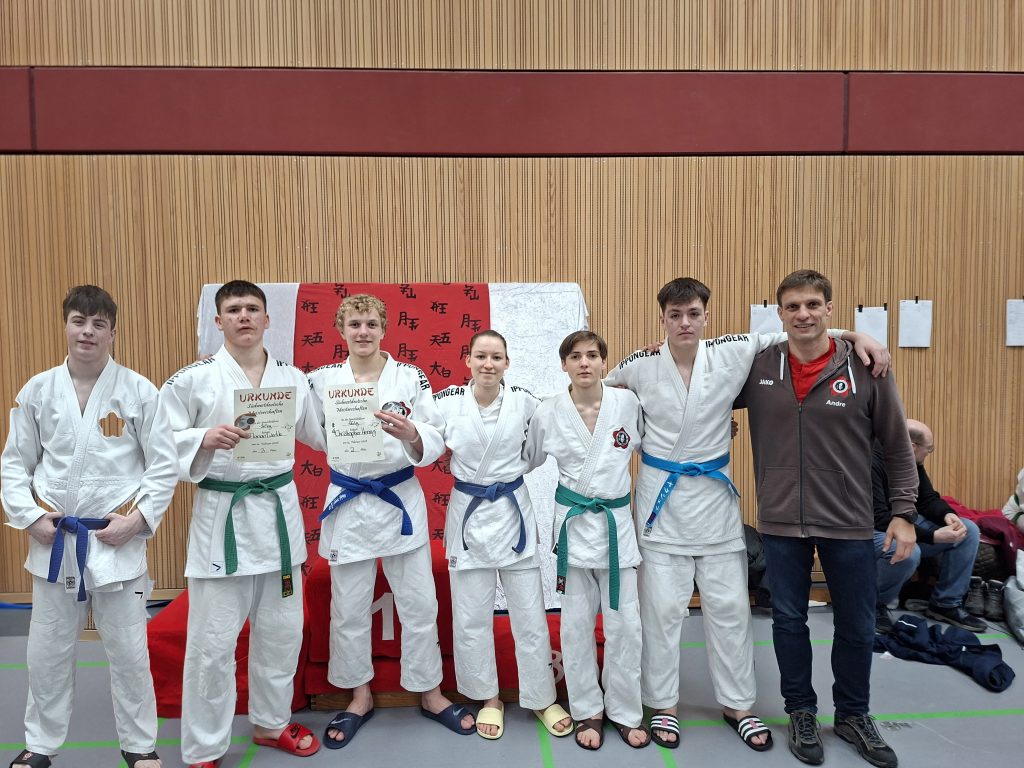Heimatnah fand die diesjährige SWD (Rheinland, Pfalz, Hessen, Saarland) der U15, U18 sowie der U21 in Wörrstadt statt. Für die letzten beiden Altersklassen stellt eine Platzierung auch gleichzeitig die Qualifikation für die Deutsche Einzelmeisterschaft dar. Linus (Doppelstart U18 und U21), Daniel, Franka (beide U21), Samuel, Florian und Christopher (je U18) auf der Matte. Samuel startete mit einem Freilos in den Wettkampf, wurde im 2. Kampf beim Versuch den späteren Finalisten zu kontern auf Ippon geworfen und kämpfte sich durch einen Sieg mit Konter und Festhalte im Bodenkampf in der Hoffnungsrunde zum Kampf um Bronze vor. Samuel musste aber die physische Überlegenheit anerkennen und sich als Jüngster im Starterfeld mit dem undankbaren 5.Platz abfinden. Auch Florian und Linus starteten mit einem Freilos in der Hauptrunde (beide -81 Kg) und verloren Ihren Zweitrundenkampf beide unnötig. Auch sie konnten durch einen souveränen Sieg in der Hoffnungsrunde durch Würfe mit Ippon gewinnen und standen im kleinen Finale. Linus konnte sich hier nicht im Griffkampf durchsetzen und wurde kurz vor Schluss des Kampfes geworfen. Florian startete aggressiv in den Griffkampf, wurde aber gekontert und lag schnell mit einer kleinen Wertung zurück. Durch seine weitere Angriffsserien gelang ihm einen Tai-Otoshi (Handwurf), der mit Ippon bewertet wurde und er sich so mit Bronze belohnte. Christopher (-66 kg) startete mit einem klaren Sieg durch 2 Tai-Otoshi ins Turnier. Den 2. Kampf gestaltet er aktiv, führt schnell mit Yuko und brachte diese Führung durch aktive Gestaltung des Kampfs über die Zeit. Im Halbfinale setzte Christopher die aktive Kampfweise fort, konnte seinen Gegner mehrfach werfen und schließlich durch einen Konter den Kampf vorzeitig beenden. Im Finale wurde seine aktive Kampfweise leider nicht belohnt. Sein Gegner konnte ihn 2 Mal auskontern und sich so die Meisterschaft sichern.